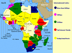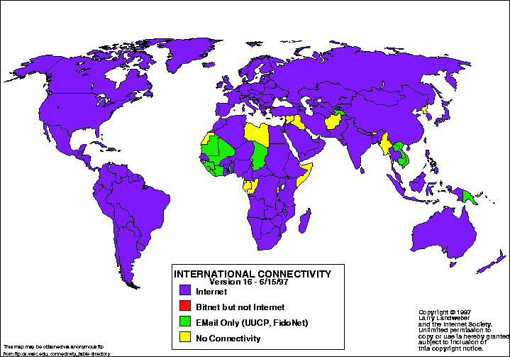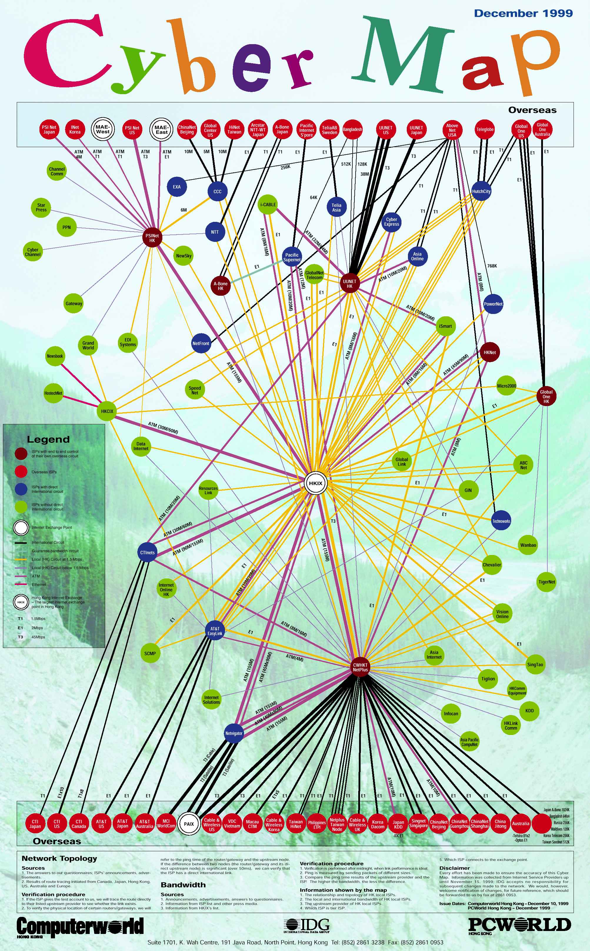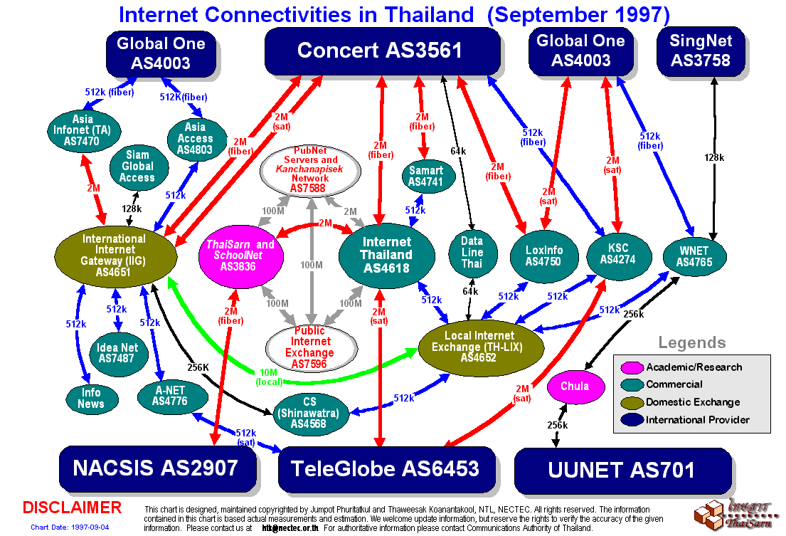 285 | 1997 computer graphics by Jumpot Phuritatkul and Thaweesak Koanantakool, NECTEC, Thailand Diagrammatic map showing Thailand's Internet Connectivity in September 1997 (another is from 1998). |