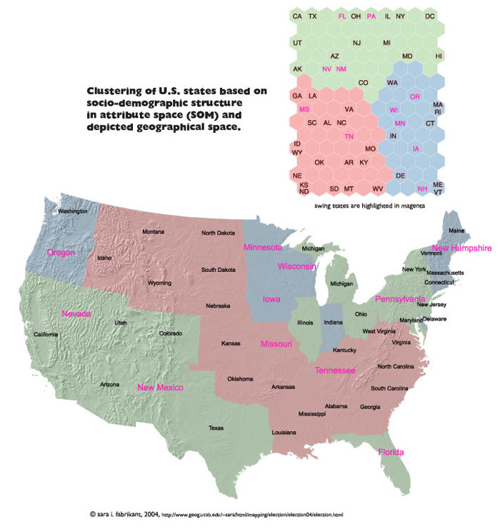 1214 | Geospace & Media Tool (GMT): Statistics2007 computer graphics by Parsons Institute for Information Mapping (PIIM) This screenshot shows census data for a selected congressional district. GMT Description The Geospace & Media Tool is an advanced information visualization application that ties incoming news flow with geospatial, census, and human network data. Related news articles are scored and aggregated into single, convenient event files. Easy-to-use graphic and geographic visualizations give the user the ability to see events, demographics, rnorganizations and current as well as past professional connections between people. Key features include: Detailed content and metadata on every news article Full dossier of individuals mentioned in every news articlern Ability to track and search events by location, topic, and customized filters Automatic extraction and aggregation of related network and statistical data Visual display of network connections between professionals Access to hundreds of statistical values specifically relevant to each news article, accompanied by map overlays |