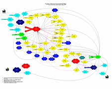 287 | 2000 computer graphics by IIker Temir A census map of Internet connectivity in Turkey, compiled by IIker Temir. It show the state of connections at the end of June 2000. |