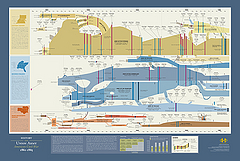 1215 | Geospace & Media Tool (GMT): Geolocated news2007 computer graphics by Parsons Institute for Information Mapping (PIIM) This screenshot shows a selected news abstract set in geographical context. GMT Description The Geospace & Media Tool is an advanced information visualization application that ties incoming news flow with geospatial, census, and human network data. Related news articles are scored and aggregated into single, convenient event files. Easy-to-use graphic and geographic visualizations give the user the ability to see events, demographics, rnorganizations and current as well as past professional connections between people. Key features include: Detailed content and metadata on every news article Full dossier of individuals mentioned in every news articlern Ability to track and search events by location, topic, and customized filters Automatic extraction and aggregation of related network and statistical data Visual display of network connections between professionals Access to hundreds of statistical values specifically relevant to each news article, accompanied by map overlays |